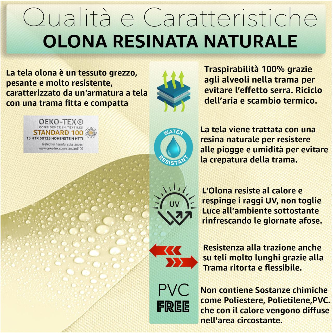 ⭐️CARATTERISTICHE: Fasce di Olona Resinata con una trama robusta e traspirante. Un'ombra fresca e rilassante senza creare EFFETTO SERRA e rinunciare alla Luce.