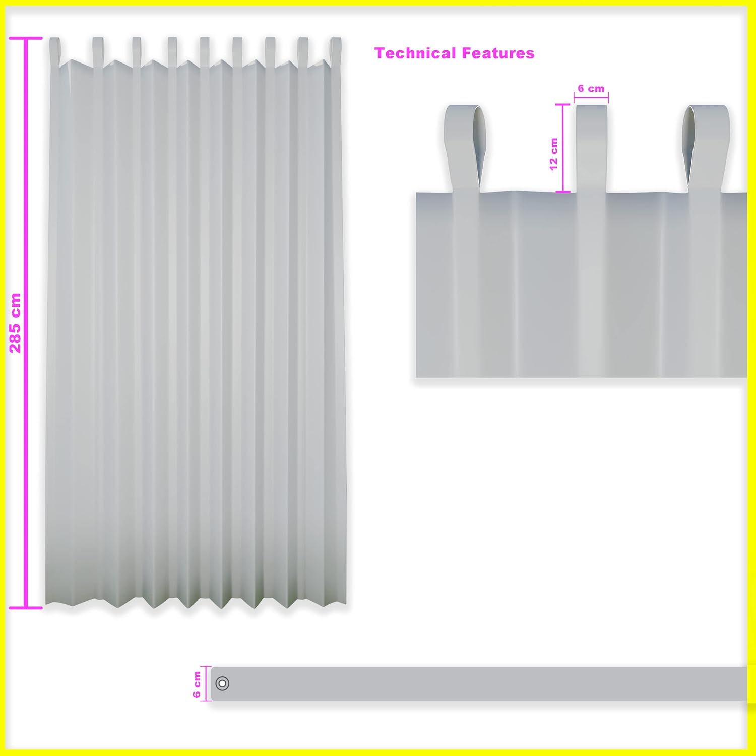La misura  155 x 285 cm dispone di 8 Asole +  1 Embrasse In Stoffa Uguale di cm 70.