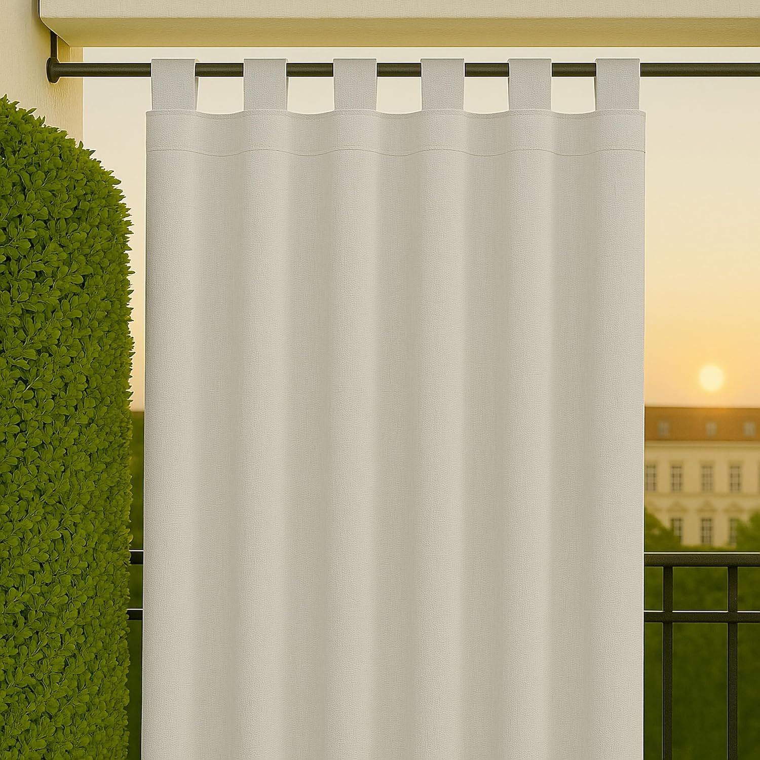 🟩 [CARATTERISTICHE] Tessuto Acrilico Water Resistent - Massima Resistenza Al Sole E Allo Scolorimento, Salsedine Pioggia Vento - E' Idrorepellente 100% - Grammatura 200 Gr/mq - Ottima Traspirabilità - La Tenda Dispone Di Bretelle in Stoffa Fisse Cucite Con Rinforzo Per Infilarle Nei Tubi O Cavi Per Appenderle - Forniamo Anche 1 Embrasse In Stoffa Uguale Con Anelli Per Gancio Nella Confezione.