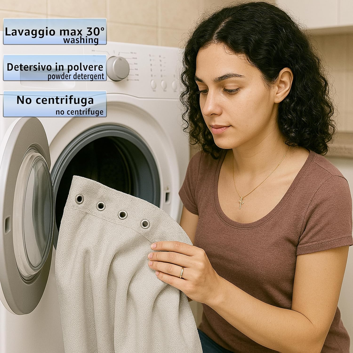 🔵 𝗟𝗔𝗩𝗔𝗚𝗚𝗜𝗢 - La Facilità Di Pulizia E Manutenzione Delle Tende Byour3 È Un Altro Vantaggio Importante. Puoi Lavare Il Tessuto A Mano O In Lavatrice A 40° Con Programma Delicati E Centrifuga Max 400 Giri, Senza L'uso Di Ammorbidenti E Solo Con Detersivi In Polvere. Inoltre, È Possibile Utilizzare L'asciugatrice E stirarla A Temperatura Media, Utilizzando Un Panno Umido Tra Il Tessuto E Il Ferro Da Stiro. Si consiglia conservarla asciutta a fine stagione.