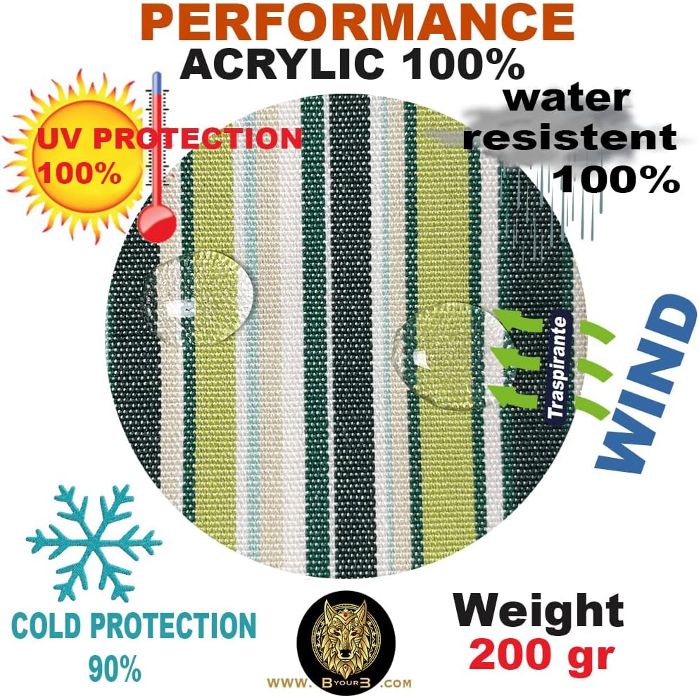 Realizzate Con 100% Acrilico Traspirante, Che Offre Massima Protezione e Resistenza Al Calore, Allo Scolorimento, Alla Salsedine, Alla Pioggia e alla muffa. La Tenda Dispone Di doppi Anelli Metallici Rinforzati nella parte superiore, per Appenderle facilmente con i Ganci In dotazione. Non Ha Materiali Chimici O Poliestere Nella Trama E Non Crea Effetto Serra Dannoso Per La Tua Salute.